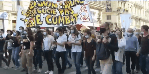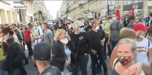 ▲ 9月12日,巴黎遊行隊伍。(BFM截圖)