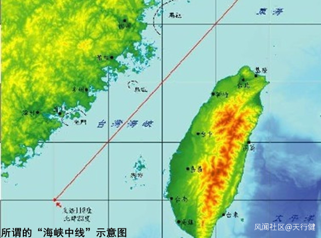 這條線的劃分,是在1954年底台灣當局與美國簽訂“美台協防條約”後,當時的美方出於控制衝突規模、明哲保身的考慮,要求台軍所有戰機和艦艇必須在台灣“海峽中線”以東活動,否則就得不到美軍安全保障。