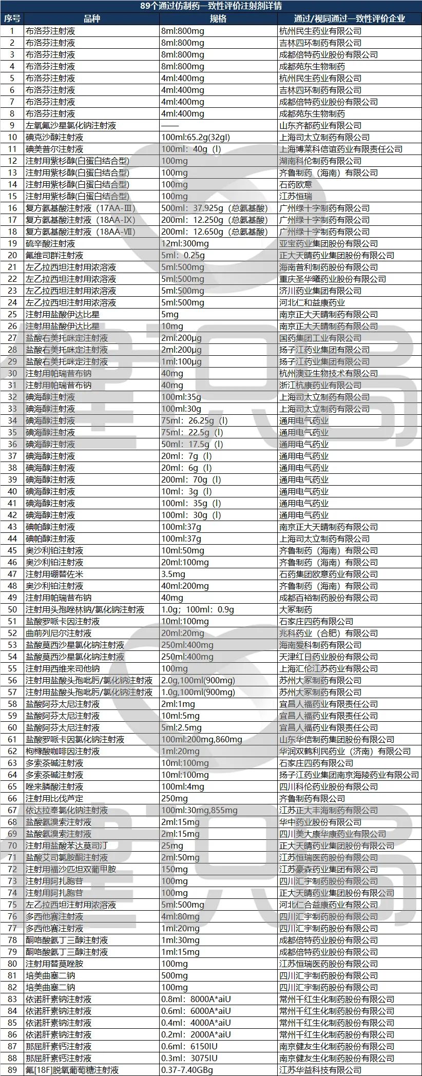 據健識局統計,目前已有至少45個品種,89個品規的注射劑通過或視同通過一致性評價。其中,紫杉醇白蛋白、培美曲塞二鈉等已經納入國採,其餘超80個產品,預計在2021年的國採中,大概率將入選。