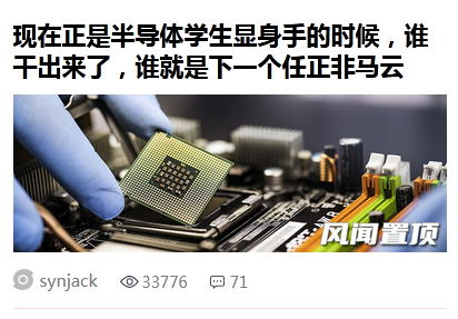 《現在正是半導體學生顯身手的時候,誰幹出來了,誰就是下一個任正非馬雲》----- synjack