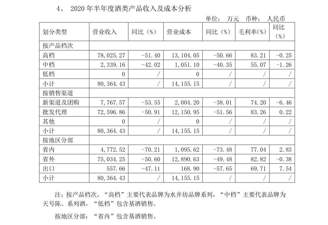 (來源:水井坊2020年半年度報告)
