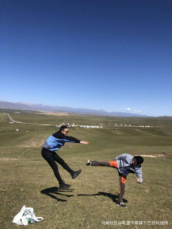 合影的時候為了扳回一局,小撒直接踩到了台階上。