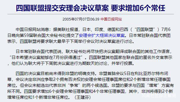 恰逢其會,時任聯合國秘書長安南推出了聯合國改革報告,有關擴大安理會的建議,在國際社會引發了軒然大波。