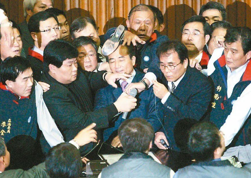 2007年1月19日,藍綠雙方正因人事問題撕作一團時,只見一隻鞋子「劃破天際」,並朝着時任「立法院長」王金平飛去。