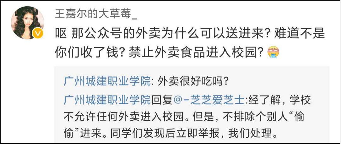 有網友覺得,且不論該校禁止外賣的規定是否合理,光是官微的回應,就讓人覺得挺豪橫的。