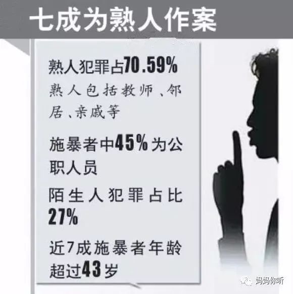 最恐怖的是,根據調查顯示,實施侵害的有7成都是熟人作案。這些人就在孩子的身邊,有可能是你的鄰居,師長,甚至是親人。