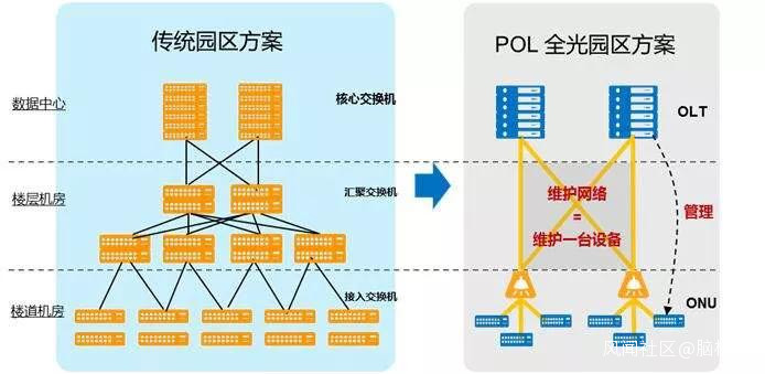 在家庭寬帶市場,基於無源光網絡的FTTH早就成為主流方案了。可當我們將目光轉向園區,會發現付費能力更高的園區網絡,起步卻晚於家庭市場。
