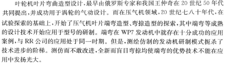 吳仲華先生1950年提出三元流理論,上世紀東廣泛使用了數十年三元流計算流場,至今也是認識航發流動機理的重要方式,1954年吳仲華先生回國,在此也希望多説幾句,外面現在總説吳老回來由於十年之類的沒發揮作用,其實斯貝引進有吳老的功勞,但是吳老還是做理論的,航發卻是工程項目,後來斯貝閒置10年也是工程問題,也許還是應該各自負責各自的領域。而小展弦比葉片的靈感是渦噴7發動機的蘇聯原型機,西方Wennerstrom由此借鑑提出的的小展弦比葉片設計思想,由此發展的彎掠葉片至今都是風扇,壓氣機主流葉片。上面兩個只是想説明,我們起步並不晚,但是沒有效繼承,很少型號發展,太多次被測仿打斷,大多型號幾乎都是從頭設計就是測仿設計,wp,ws家族幾乎就是測仿家族,直到最近。可以説,航發在國內,實踐了印度的很多軍工業發展道路。並證明這條路前行,對於航發來説,永遠是死路。