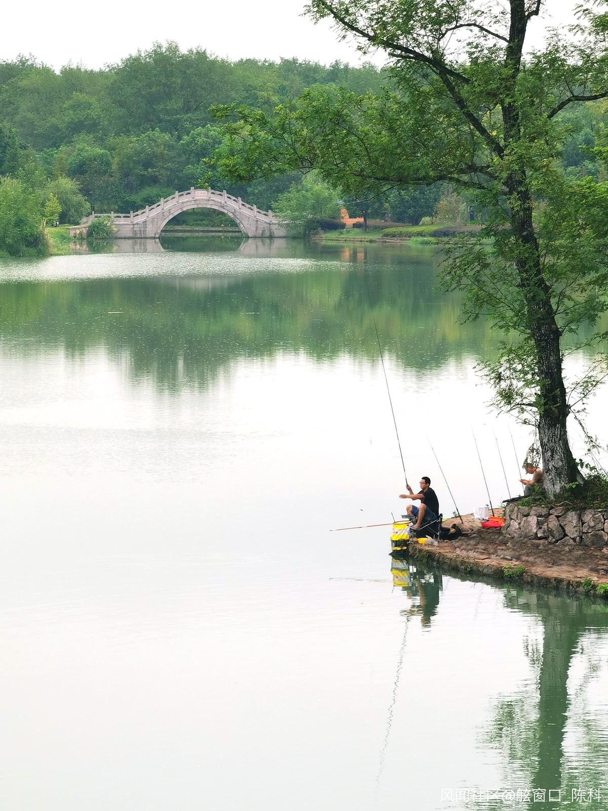茅草深深藏釣翁,車喧不聞同魚樂(與如意湖相連的河溪岸邊垂釣者也很多)