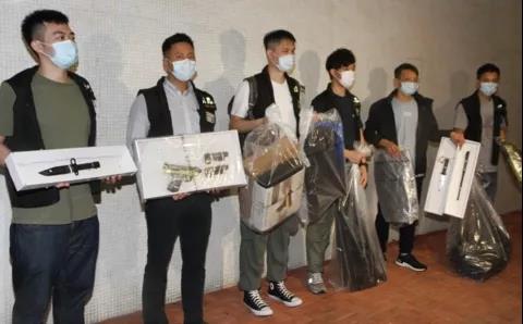 行動中,警方在屋內檢獲大批武器,包括一支手槍型的胡椒彈球槍、一支伸縮棍、兩把約30釐米長的軍刀、3支氣槍、一件避彈衣及15個防毒面具,當場拘捕一名姓呂男生及其姓蔡母親,兩人涉嫌“無牌管有槍械及彈藥”“未經許可輸入戰略物品”“藏有攻擊性武器”三宗罪。