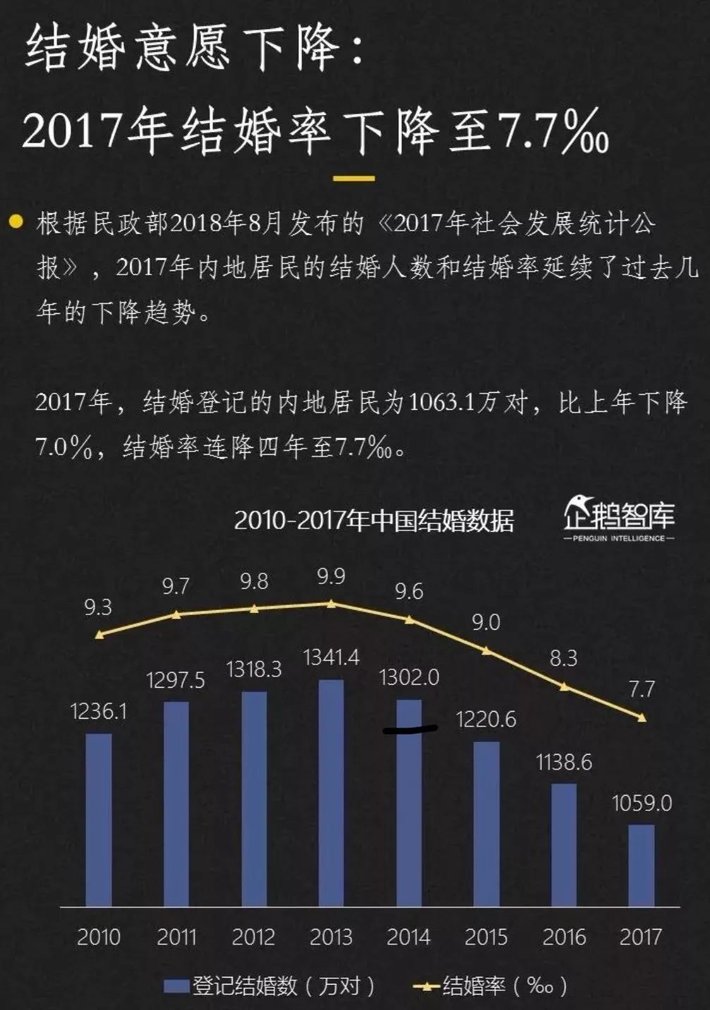 2017中國統計年鑑的數據顯示:離婚的越來越多。