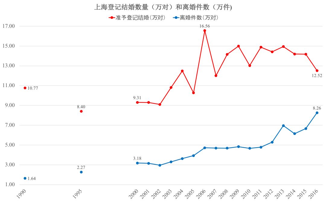 北京和上海每年的離婚數現在就已經快追上每年的結婚數了。