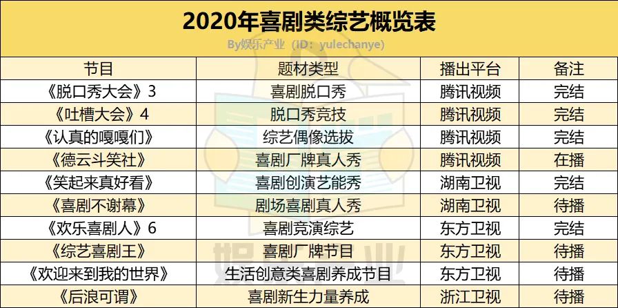 但就2020年整體衞視片單與網路綜藝的佈局來看,喜劇綜藝有可能會在下半年再度高頻出現。