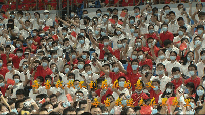 當《夜空中最亮的星》《歌唱祖國》節奏傾瀉而出,現場同學用手機手電筒和小國旗表達着他們對夢想的渴望,和對祖國最熾熱的愛。
