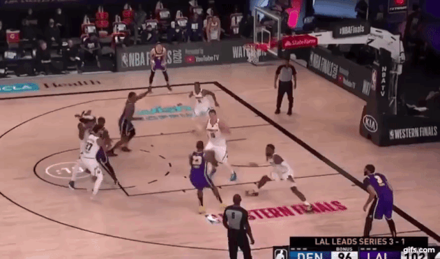 也因為戴維斯與約基奇早早地半場3犯規,勒布朗必須接管。第三節剛開始他已經20分7助攻了。