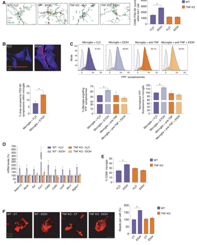 同樣地,儘管這些作者的小膠質細胞消融實驗表明,小膠質細胞是乙醇暴露期間前額葉皮層中TNF的主要製造者,但是他們並不能排除外周器官(比如肝臟)甚至星形膠質細胞在應對乙醇暴露時產生的TNF也可能有助於導致他們觀察到的小膠質細胞表型。