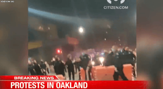 據警方説,抗議者在哈里森1500街區開始向警察扔瓶子,罐子和各種東西。公共交通系統BART的官員因擔心內亂的進一步升級,與週五晚上關閉了位於12街和市中心的車站。