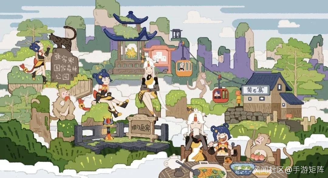 在東方奇幻風格的港口城市璃月中,許多地標地貌取材自我國的山河美景,比如璃月西北部常年雲霧繚繞、仙人出沒的峻嶺——絕雲間,其場景設計就融合了張家界地貌頗具異世界奇幻感的特色。作為國內著名的5A級景區,張家界的三千奇峯、八百秀水也讓絕雲間的奇幻風格有了更好的表達載體。