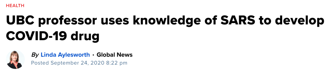 當地時間9月24日,有外媒Global News報道稱,加拿大UBC的大學教授研發出了治療新冠肺炎的藥物。