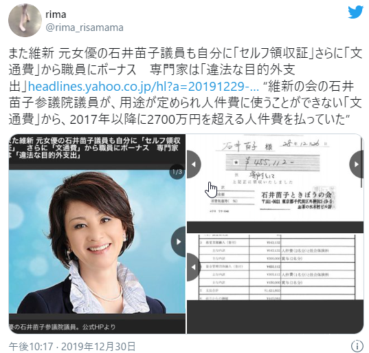 此外,政治家還會通過舉辦政治集會等各種手段吸收政治捐款(獻金)。而這些政治捐款等政治資金使用時5萬日元以上要發票,以下不需要發票。説白了,少額的你怎麼用誰也不知道。因此在因其他事件被調查的政治家中,多次出現流用政治資金用於夜店或購買黃色書籍等“不恰當”消費的醜聞。