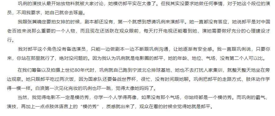 一如導演在後來的訪談中提及,郎平這個角色,非鞏俐莫屬——
