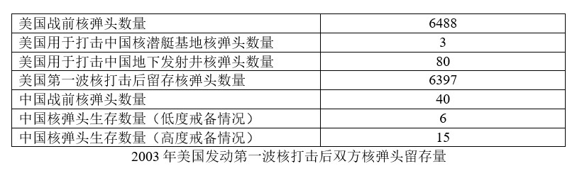 到2003年,中國有能力首先打掉基地內的美國核潛艇,再打停放的轟炸機,再打井內的“民兵3”,但效果依然有效,尤其是“硬啃”在堅固的地下發射井內的“民兵3”