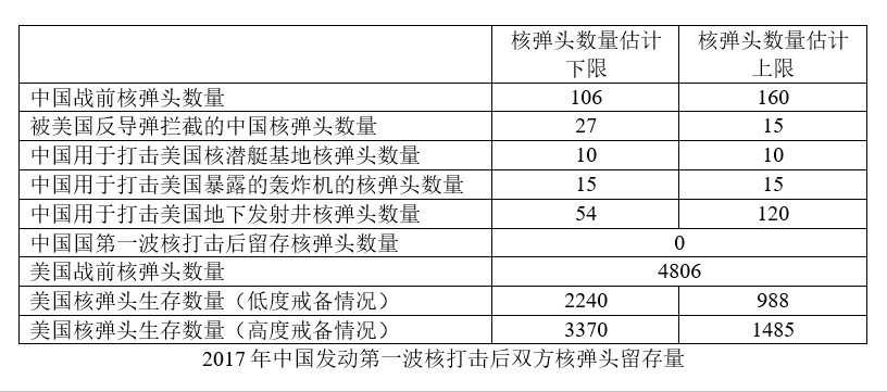 在2017年,中國情況依然不樂觀,但美國核武庫大大削減了,所以中國先發制人的結果時美國可能只剩不到1000枚核彈頭了