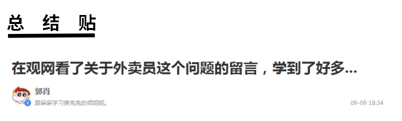 比如,總結貼,對於類似外賣騎手這類引發了大量討論的話題,編輯會整合其中最優質的評論,在一個帖子裏呈現出來,讓大家看個爽。