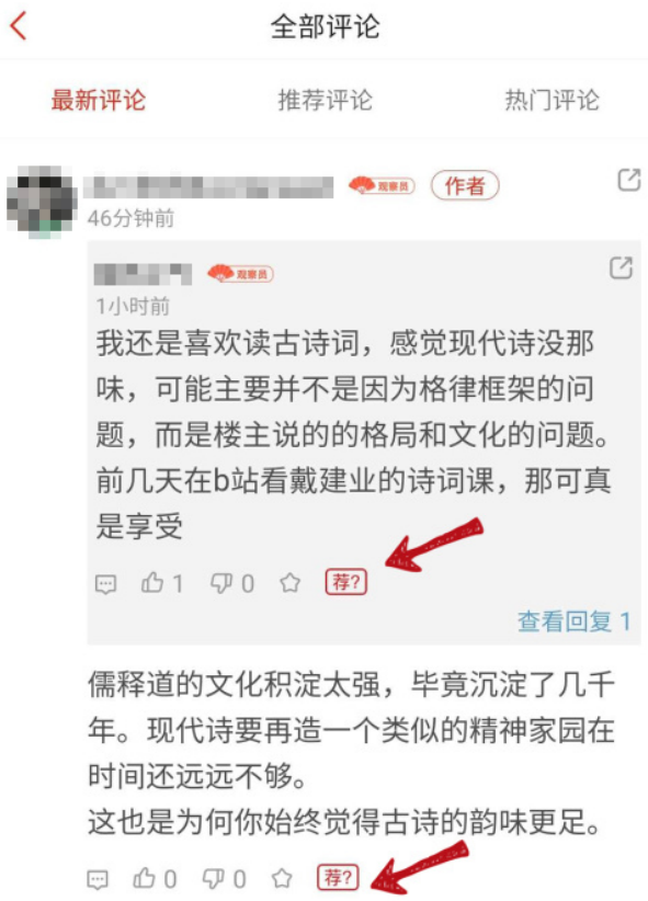 相信細心的大家已經注意到了,觀網pc端的推薦功能已經上線有一段時間了。主要呈現在評論區的下方,有一個紅色的“薦”字。點擊之後,填寫想要的標題,就可以推薦啦。每人每天有3次的推薦機會。推薦成功之後會在評論上方顯示“誰推薦的”,點擊之後就會跳轉到這條評論所形成的主貼裏。