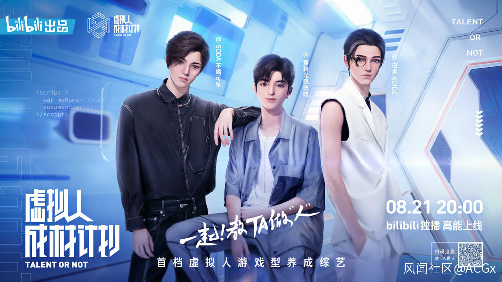 例如於8月在B站開播、每月更新一期的綜藝《虛擬人成材計劃》,就邀請UP主實時評論,見證虛擬人物從“廢柴”到“偶像”的養成之路。除了參與B站網綜,這些虛擬人物還是漫畫《要有光》的主角,他們也如真實偶像一般,發佈單曲、投稿視頻,在微博“營業”。