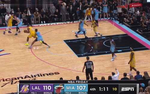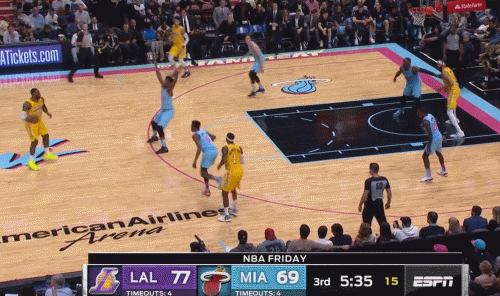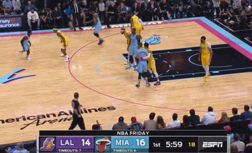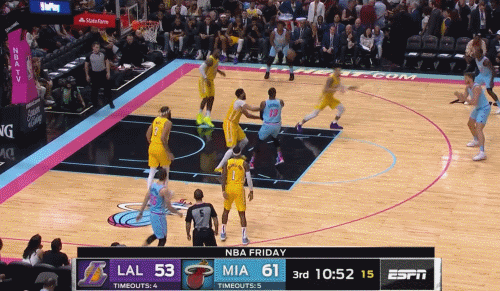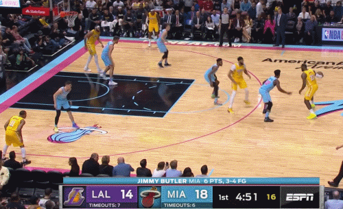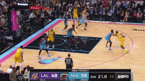 **第二,熱火有出色的整體防守紀律,收縮協防、二三聯防用得很多,讓三分不好的球隊很尷尬。**凱爾特人打了6場,攻聯防始終搖擺不定,到最後都沒有一個明確、熟練的辦法。熱火的聯防與盯人交替使用,與場邊的斯波教練極有默契。下面對湖人的這個聯防,就是在暫停後突然使用,我們看FIBA或CBA比賽多了比較習慣,但NBA球員不習慣。