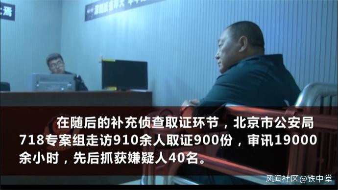 在隨後的補充偵查取證環節,北京市公安局718專案組,走訪910餘人,取證900份,審訊共計19000餘小時,先後抓獲嫌疑人40名。
