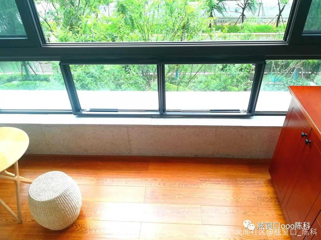 換成四扇鈦合金移門後操作就輕鬆多了,也更加美觀。另外,鈦合金移門也可用作“風門”,很多情況下,用移門控制客廳的風量比陽台玻璃窗控制客廳的風量更加方便輕鬆。換上四扇鈦合金移門後,使陽台變得更雅緻些。