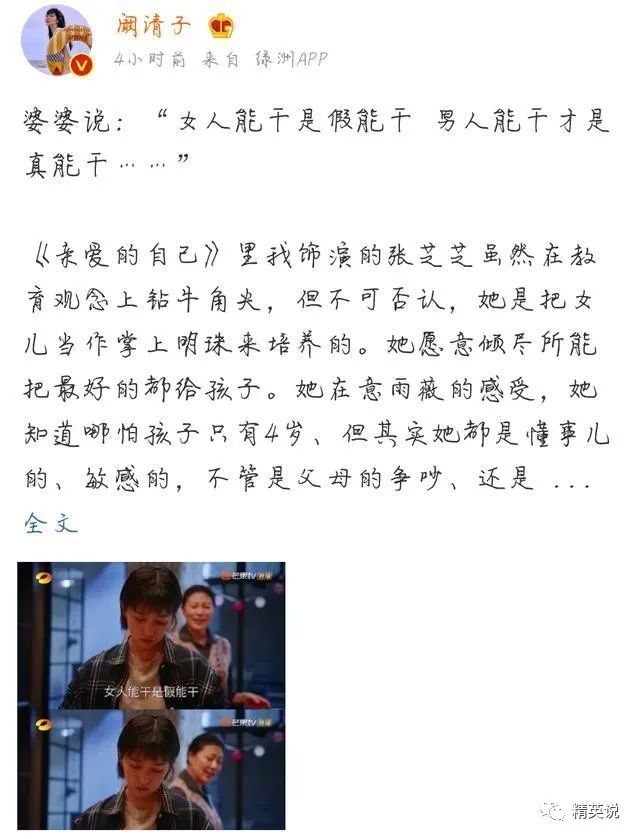 隨後,闞清子在微博上發文,表示自己十分反對**“重男輕女”**的陳舊思想,並指出,每一個女孩的降生都值得被期待。