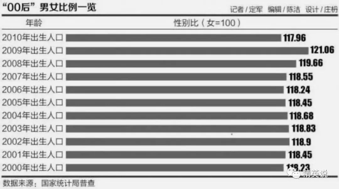 據統計,2000-2010年出生的總人口大約1.46億,其中男生比女生多出1264萬,相當於每年都有100多萬女孩被動“消失”了。