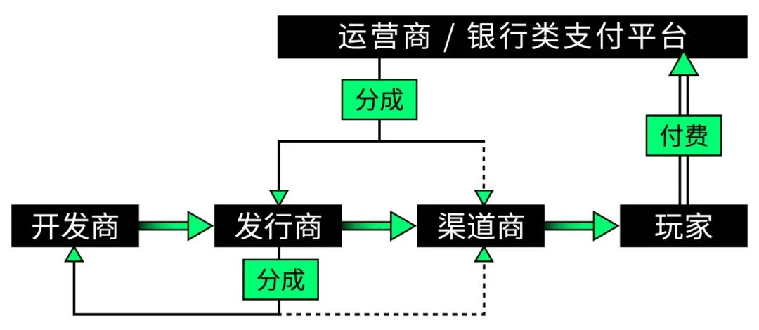 像是遊戲行業,開發商投錢研發製作遊戲,發行商負責壓制光盤、包裝,最後再由遊戲店進行銷售。