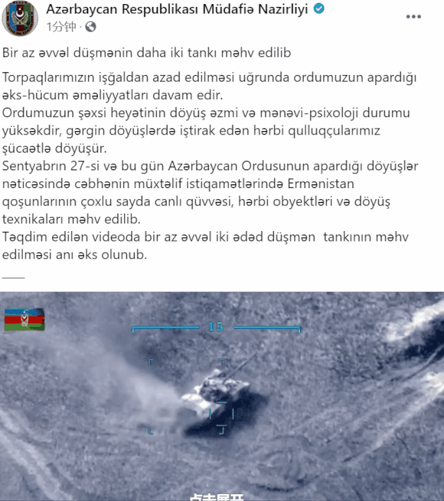 阿塞拜疆下午公佈了對方士兵傷亡的視頻