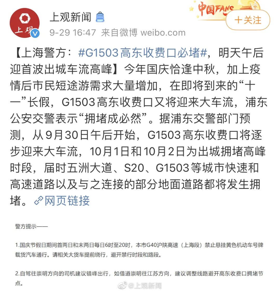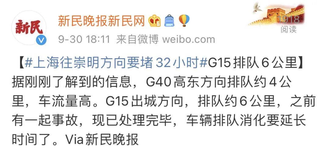 不要羨慕人家早放假,他們都還堵堵堵堵堵在路上!上海往崇明要堵32小時_風聞