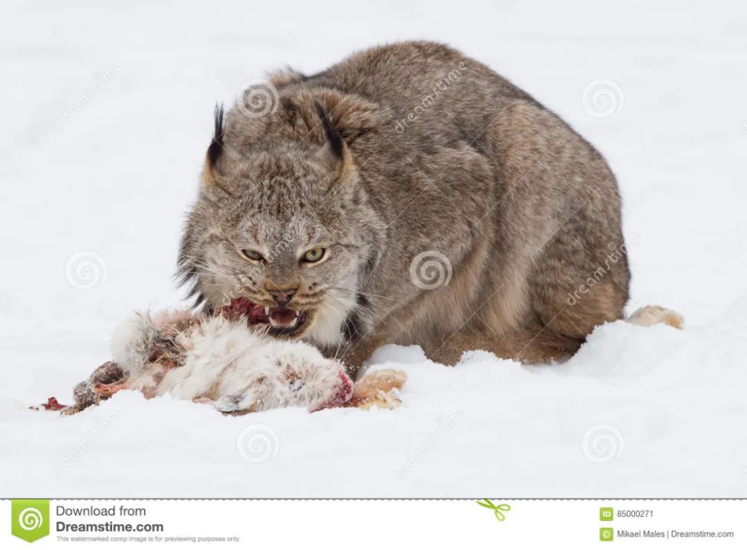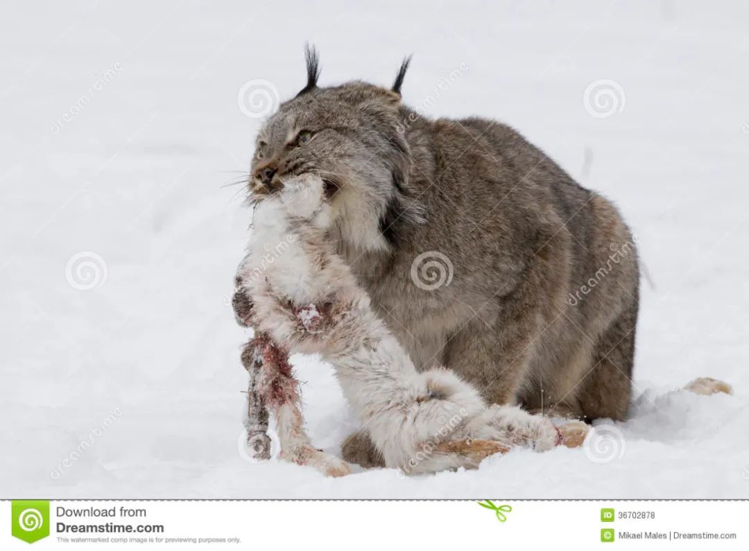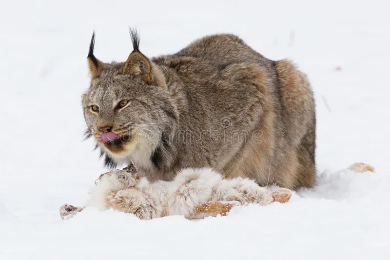 在冬天,加拿大猞猁幾乎只靠每天一隻雪靴兔填飽肚子,而在其它季節,雪靴兔也穩居加拿大猞猁的獵物之首。