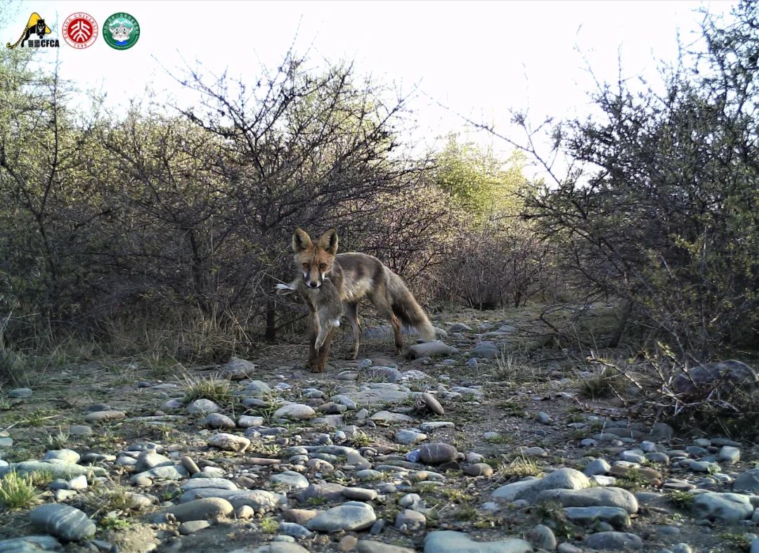 祁連山國家公園青海片區拍到的赤狐吃兔子