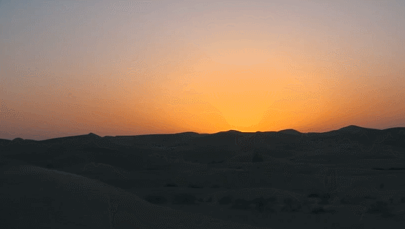 第二天的旅程,伴隨着沙漠日出同步開啓。爬上營地旁邊的高沙丘,朝着日出的方向遠眺,很快,太陽就從沙丘與天空銜接的地方升起來,整個沙漠瞬間被金輝鋪滿,波瀾壯闊。