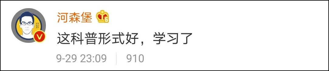包括@河森堡、@夏目家的小詩哥 在內的多位大V紛紛轉發,並稱贊這樣的科普形式既新穎又有趣,可謂是“科普界的泥石流”。