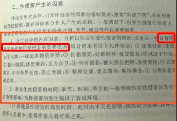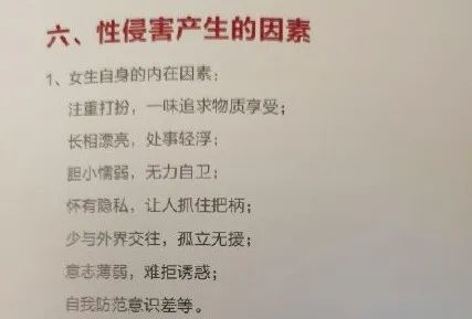 內容一脈相承,“女生的一些自身因素是導致她們受侵害的重要原因”。