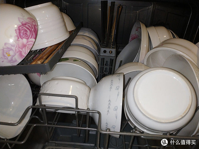 8、放碗時可以在幾個碗上倒扣一個碗,疊加起來,只要有點縫隙就行,但不能擺成碗口朝上,否則會攔截水影響清潔效果。目前就這些經驗了。