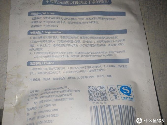 但為了保險我還是買了簡境洗碗機洗機片,用了幾次後發現,啥玩意,清潔力也不強啊,洗不乾淨不鏽鋼鍋蓋上的油污的。主要成分也是鹼粉(碳酸鈉)和檸檬酸(有機酸)?配料表裏連過碳酸鈉(遇水釋放雙氧水)都看不出來。