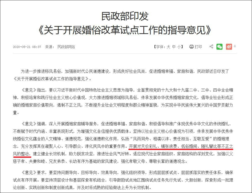 今年5月,民政部還印發意見,要整治低俗婚鬧等不正之風。