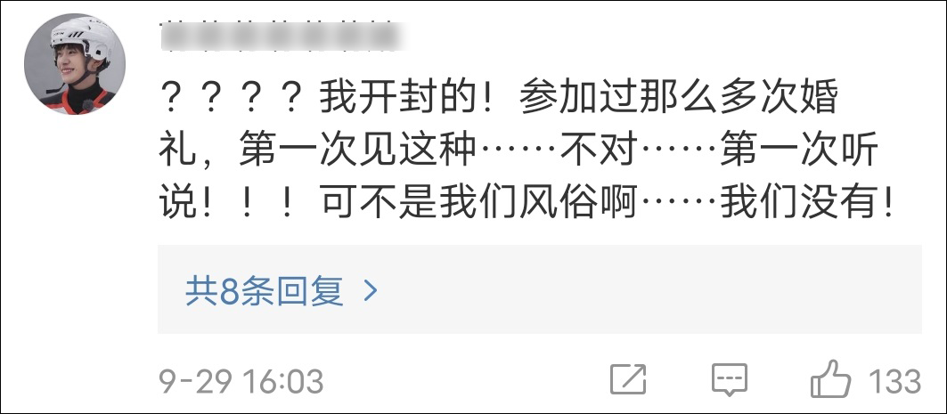 一位網友説,任何事情都要有底線,不能借着婚鬧混水摸魚,凌駕於道德之上。婚禮上,大家不被傷害、不失體面,這才是婚禮應有的樣子。