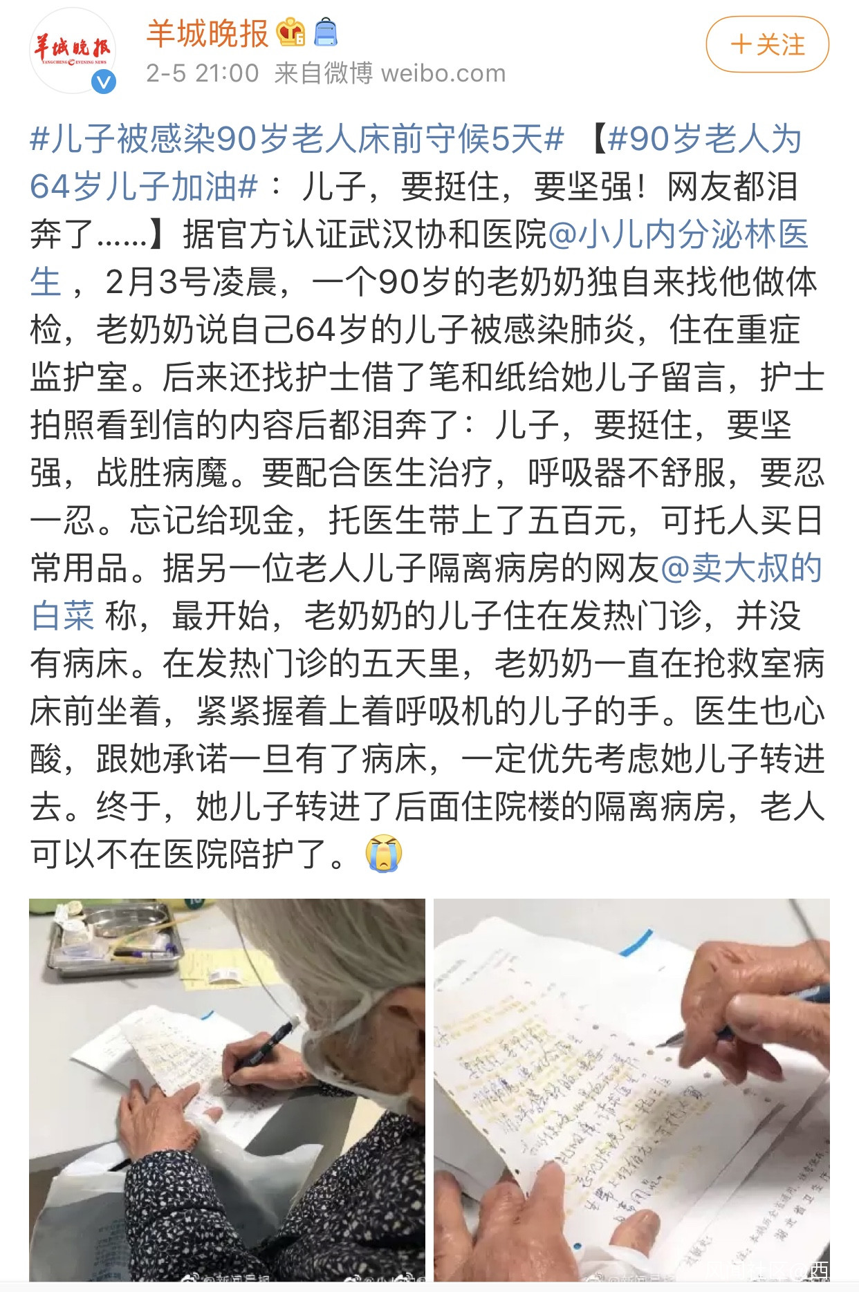 大家還記得疫情初期的這條新聞嗎?64歲兒子被感染,90歲老人牀前守候。