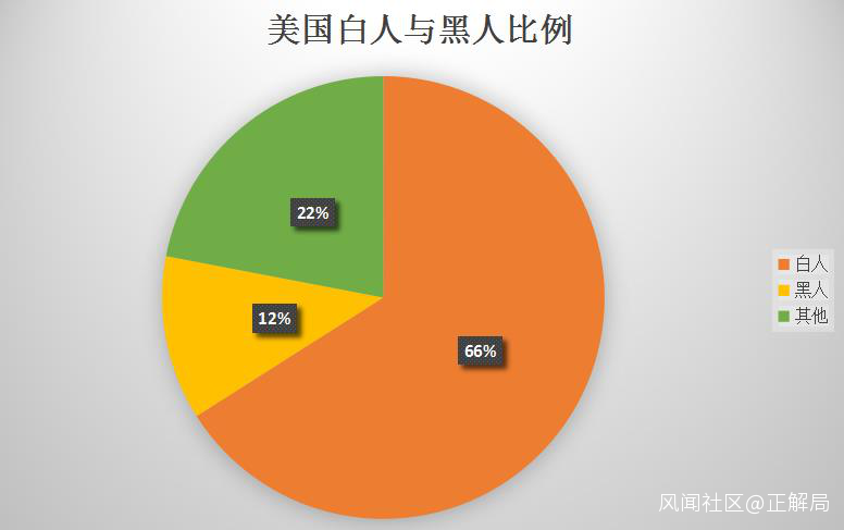 美國黑人在人口數量上佔有一定比例,但也不是特別誇張。截止到2019年12月,美國人口約3.30億,其中非拉美裔白人約佔62.1%,拉美裔約佔16.9%,非洲裔約佔13.4%。美國的50個州和1個特區裏,黑人人口占比超過全國平均水平的有17個。