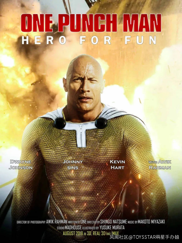 新聞一出歐美的粉絲馬上把 巨石強森 P上琦玉老師的造型,畢竟巨石強森力量形象和光頭還是挺符合的… 索尼影業對於本次的漫改很大概率會邀請一線知名影星,作為票房的保證手段(而且賣萌搞笑巨石強森十分拿手,估計大家也感受過)。
